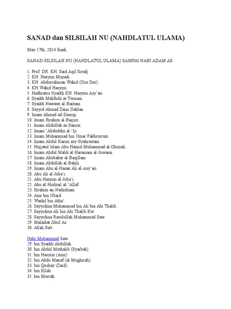 Ada 124 ribu nabi, 313 rasul, dan 25 nabi yang harus kita tau. Habaib adalah cucu keturunan nabi muhammad saw dari anak putri nabi muhammad saw yang bernama sayyidatina fatimah. Nasab juga identik dengan silsilah. Salah satu keistimewaan nabi muhammad saw adalah nasabnya tersambung jelas hingga ke nabi adam. Silsilah nabi muhammad saw yang wajib diketahui oleh setiap muslim adalah sebagai berikut yang akan kita bahas bersama disini.